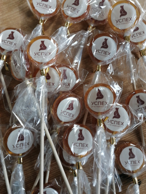 Леденцы на палочке с логотипом оставят приятное впечатление о Вашей компании и запомнятся как приятные и вкусные корпоративные подарки.